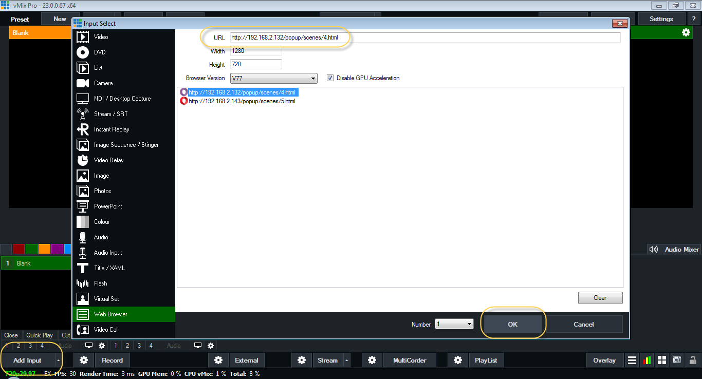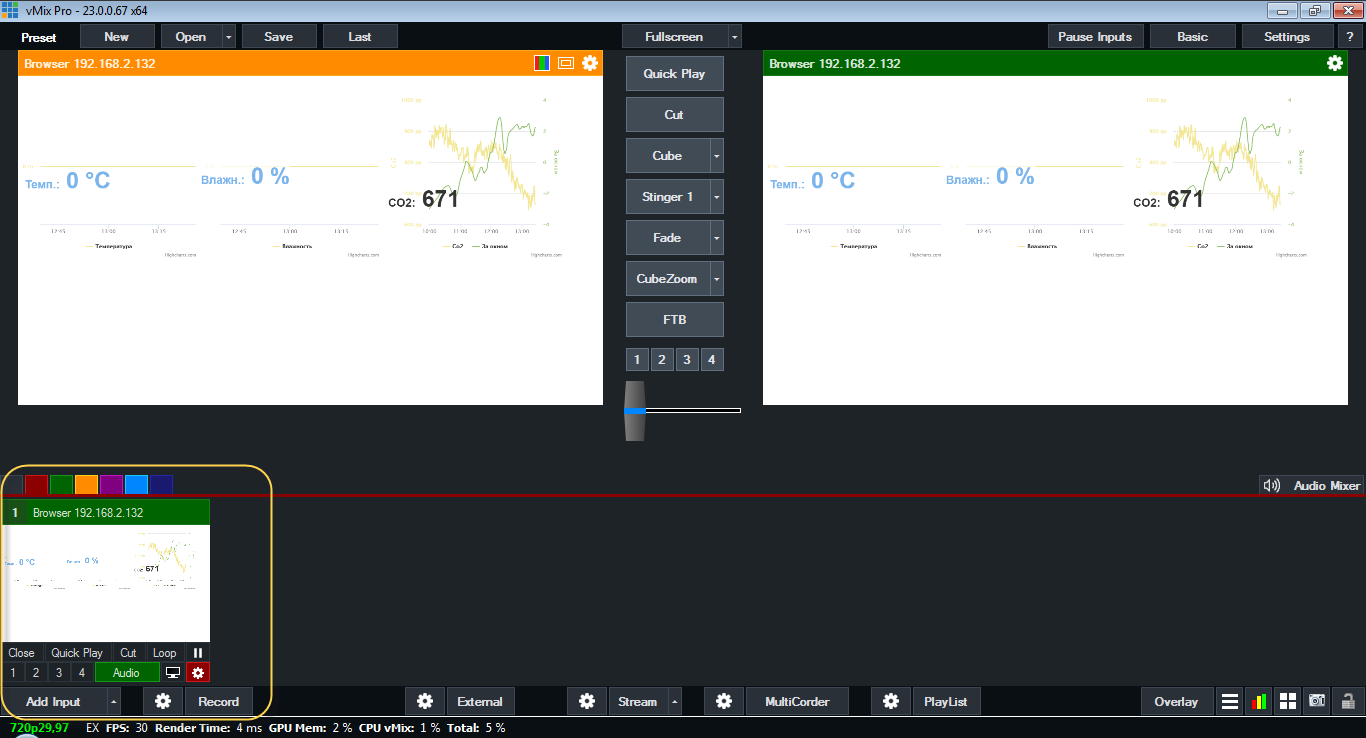 Более детальные инструкции по работе с VMix лучше поискать на YouTube - их много и достаточно подробных.