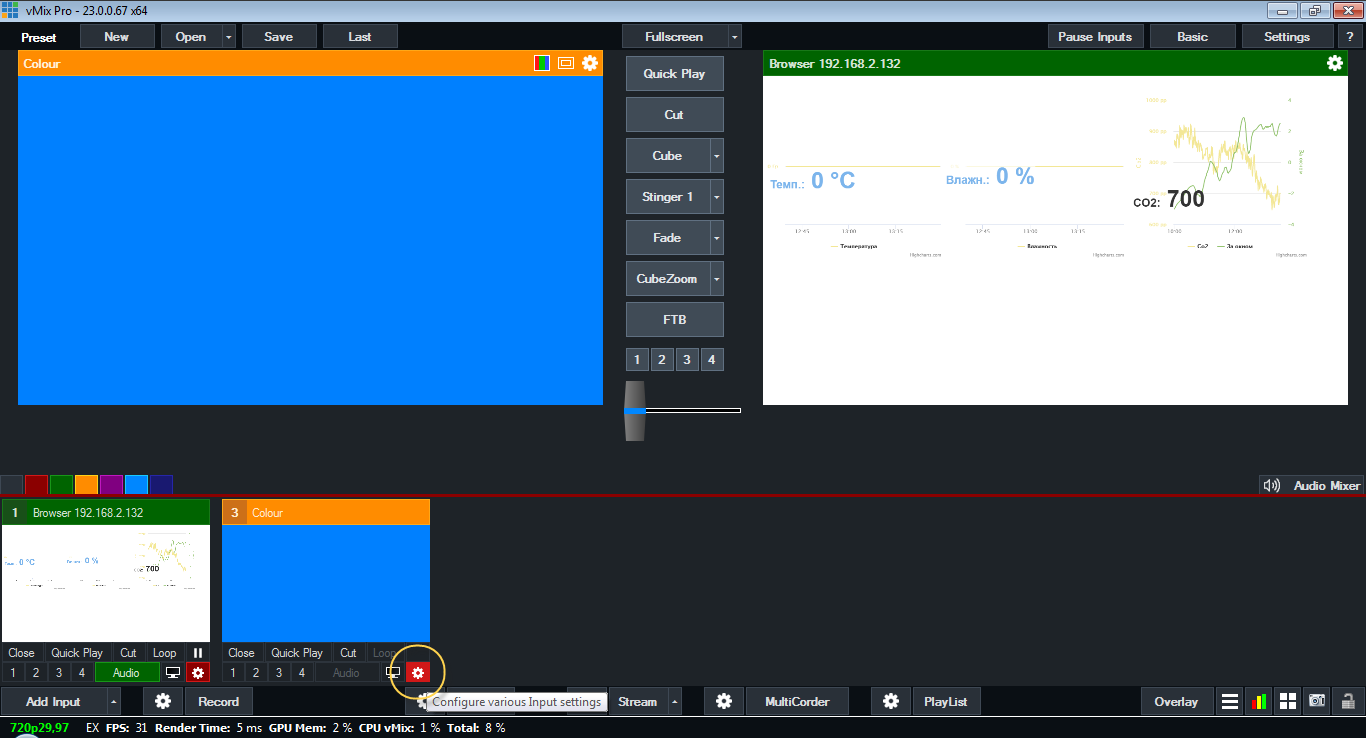 Запускаем VMix,