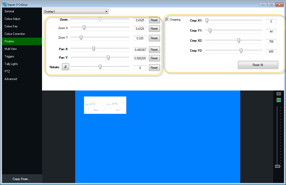 Далее нажимаем Position и корректируем расположение экрана с показаниями на общем экране.